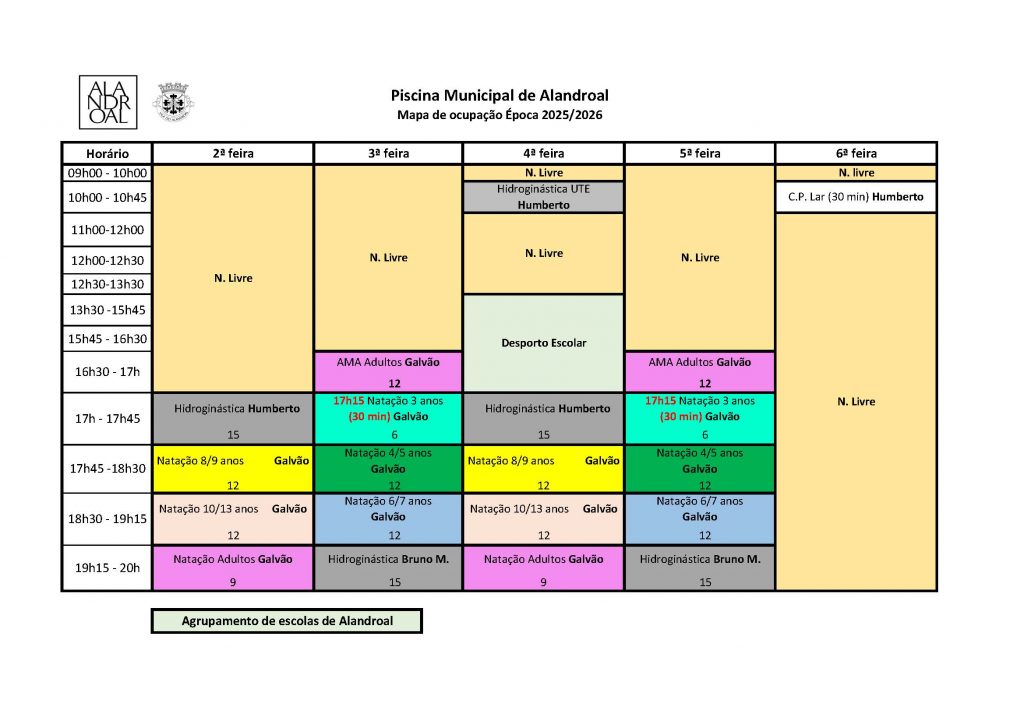 (Utilização livre; aulas de natação e de hidroginástica)